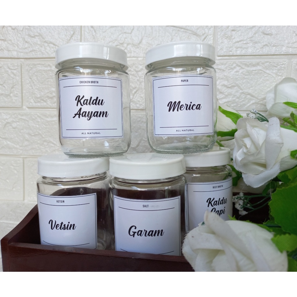 Toples bumbu dapur lebih tebal free request stiker toples kopi dan teh free label barang dapur. Toples bumbu dapur botol plastik 200ml free label sticker bisa custom.
